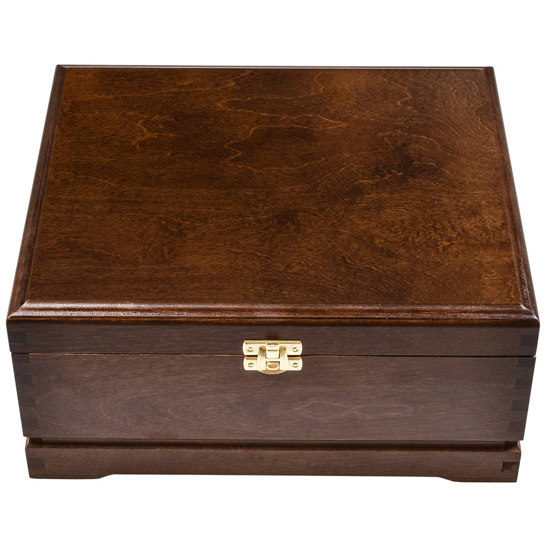 Шкатулка из массива не только обеспечивает дополнительную защиту бокалов от внешних воздействий, но и придаёт всему изделию особую презентабельность.