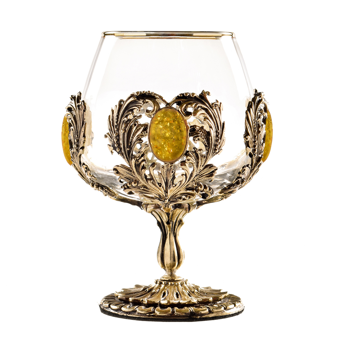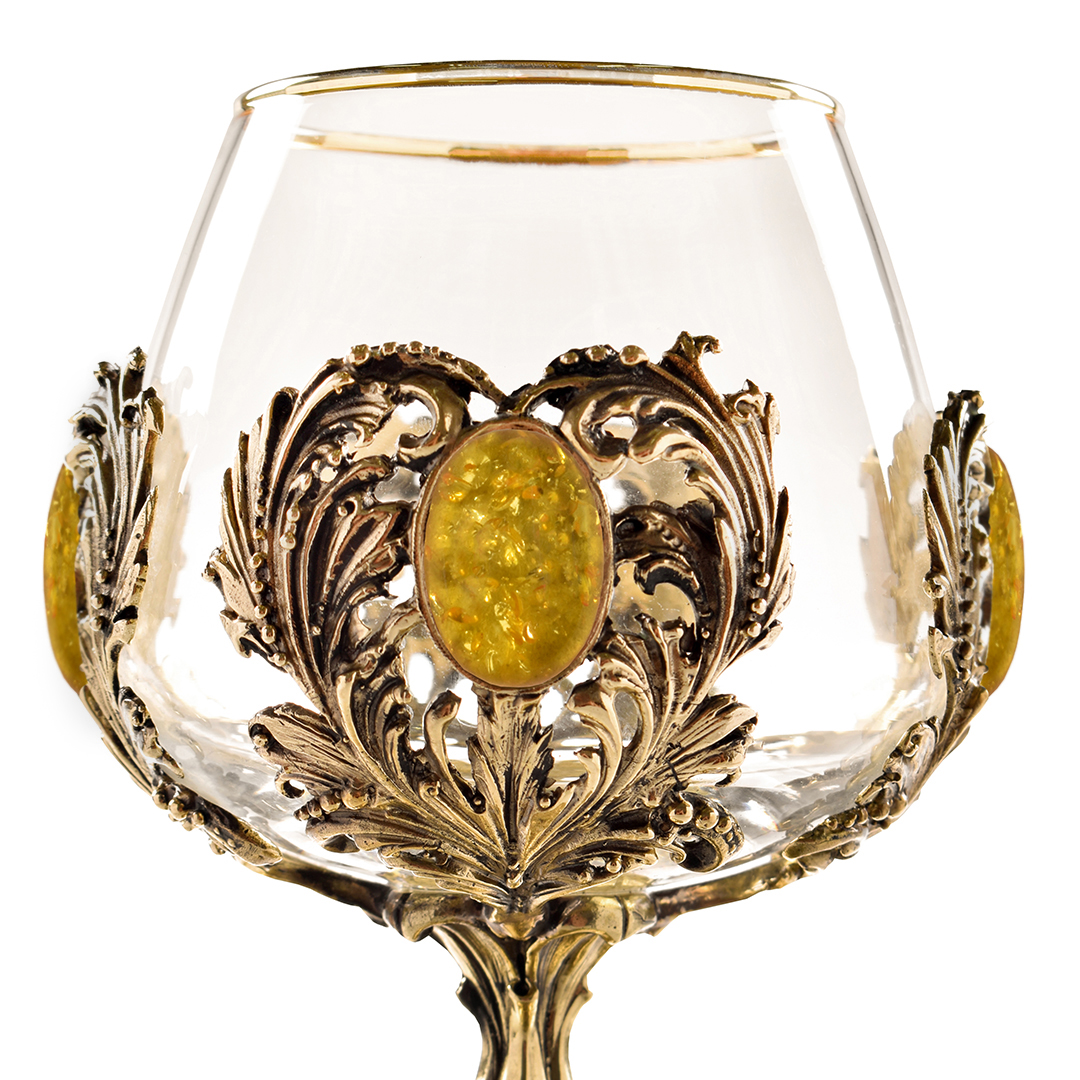 Набор 2 бокала для коньяка с искусственным камнем "Янтарь желтый", в шкатулке из массива