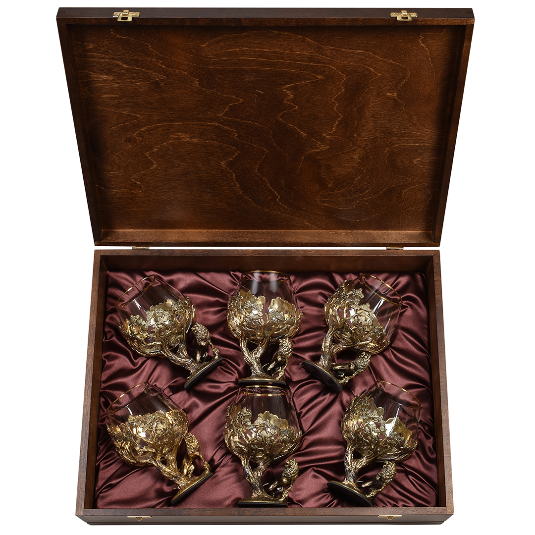 В наборе 6 бокалов для коньяка в деревянной шкатулке |