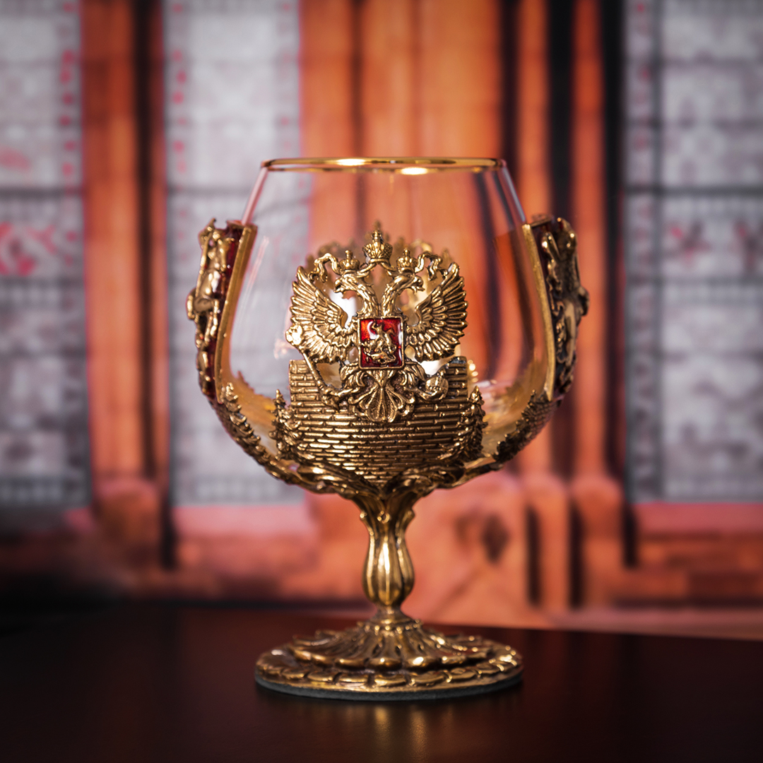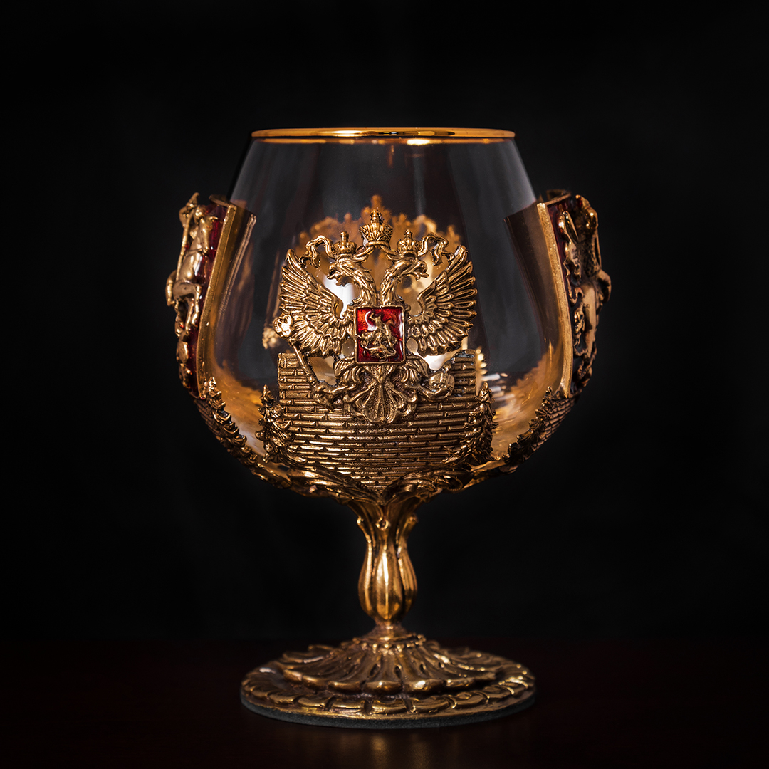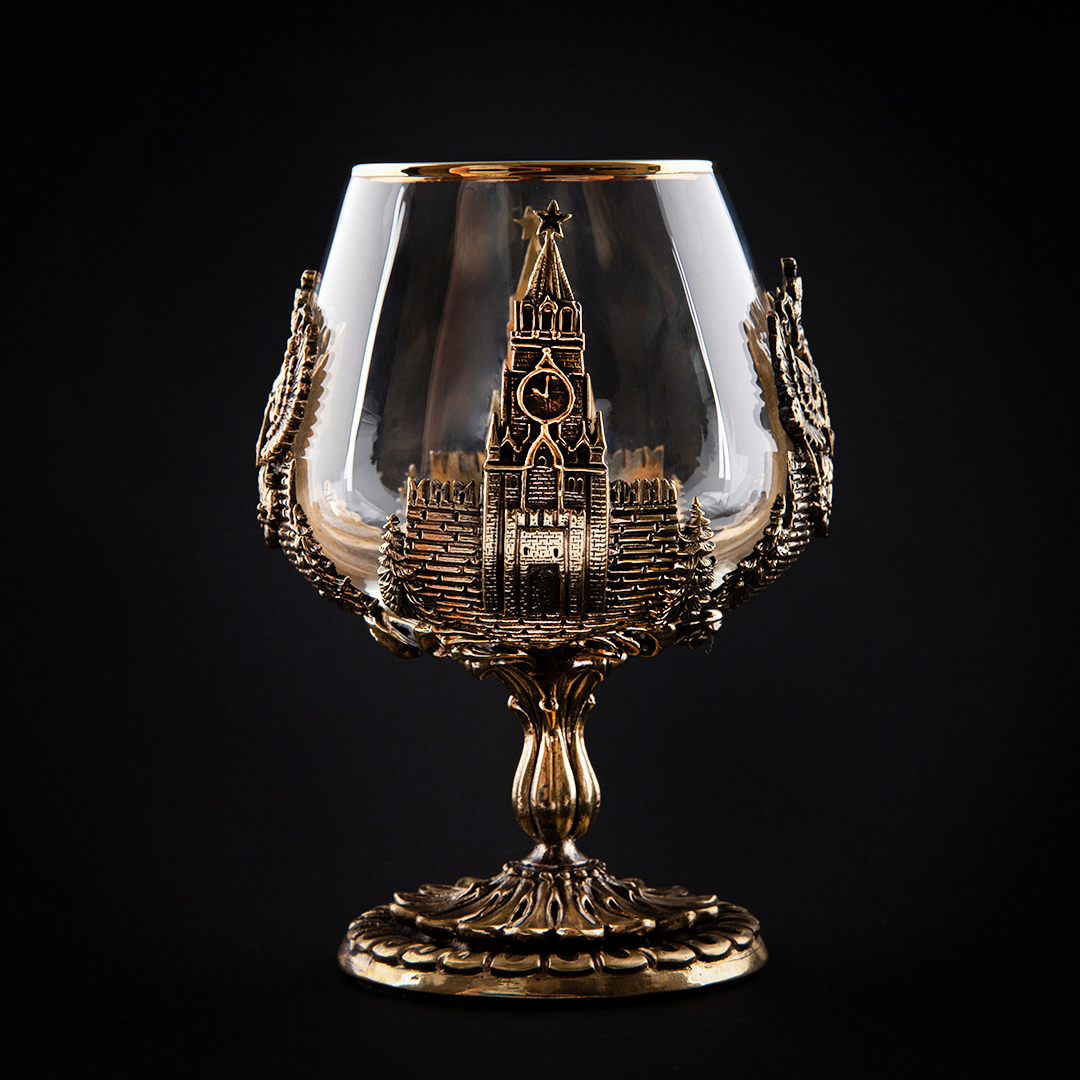 Бокал: стекло с золотым декорированием ,патинированная латунь ручная работа |