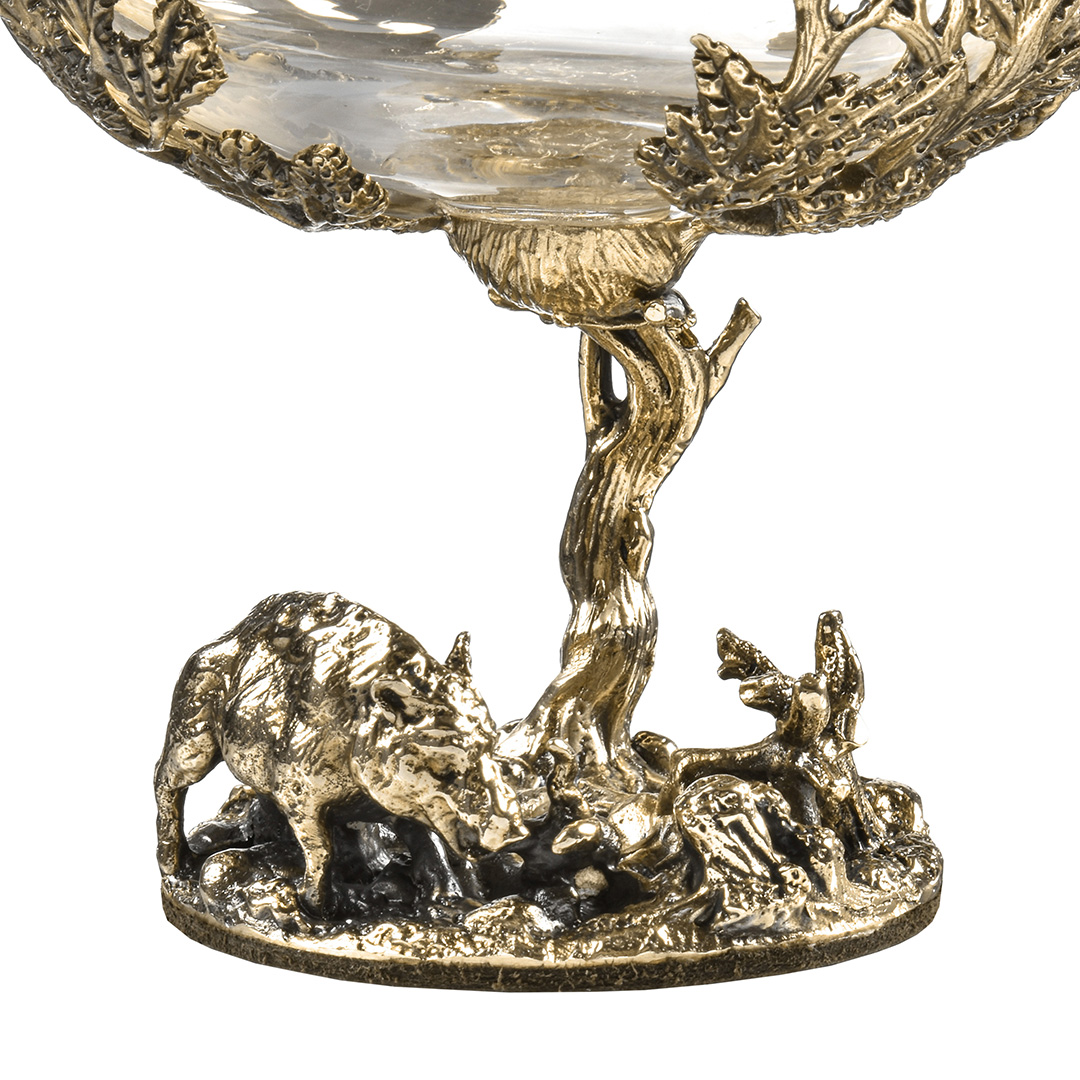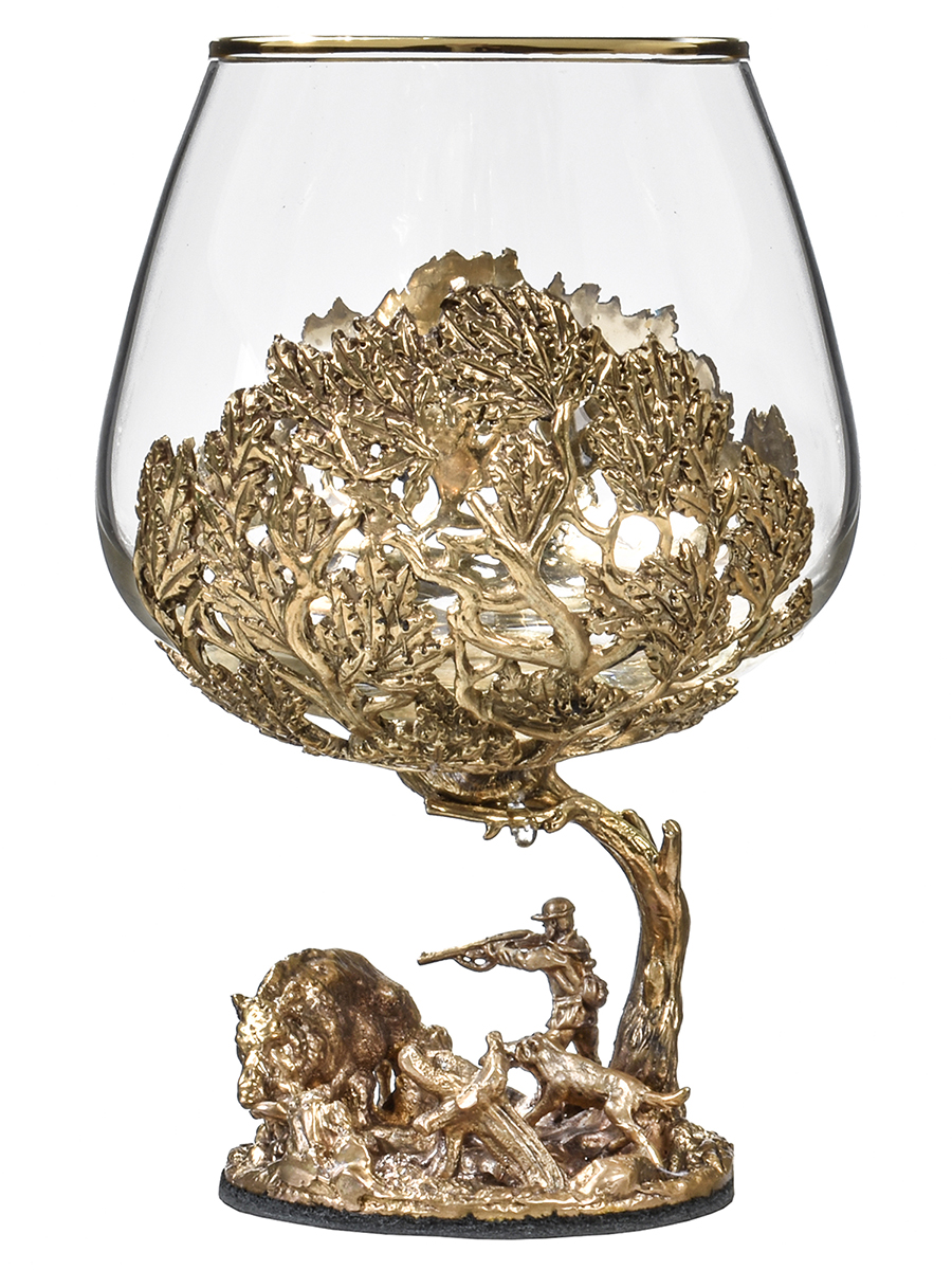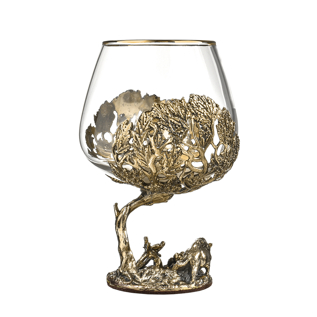 Бокал: стекло с декорированием, патинированная латунь, ручная работа. |