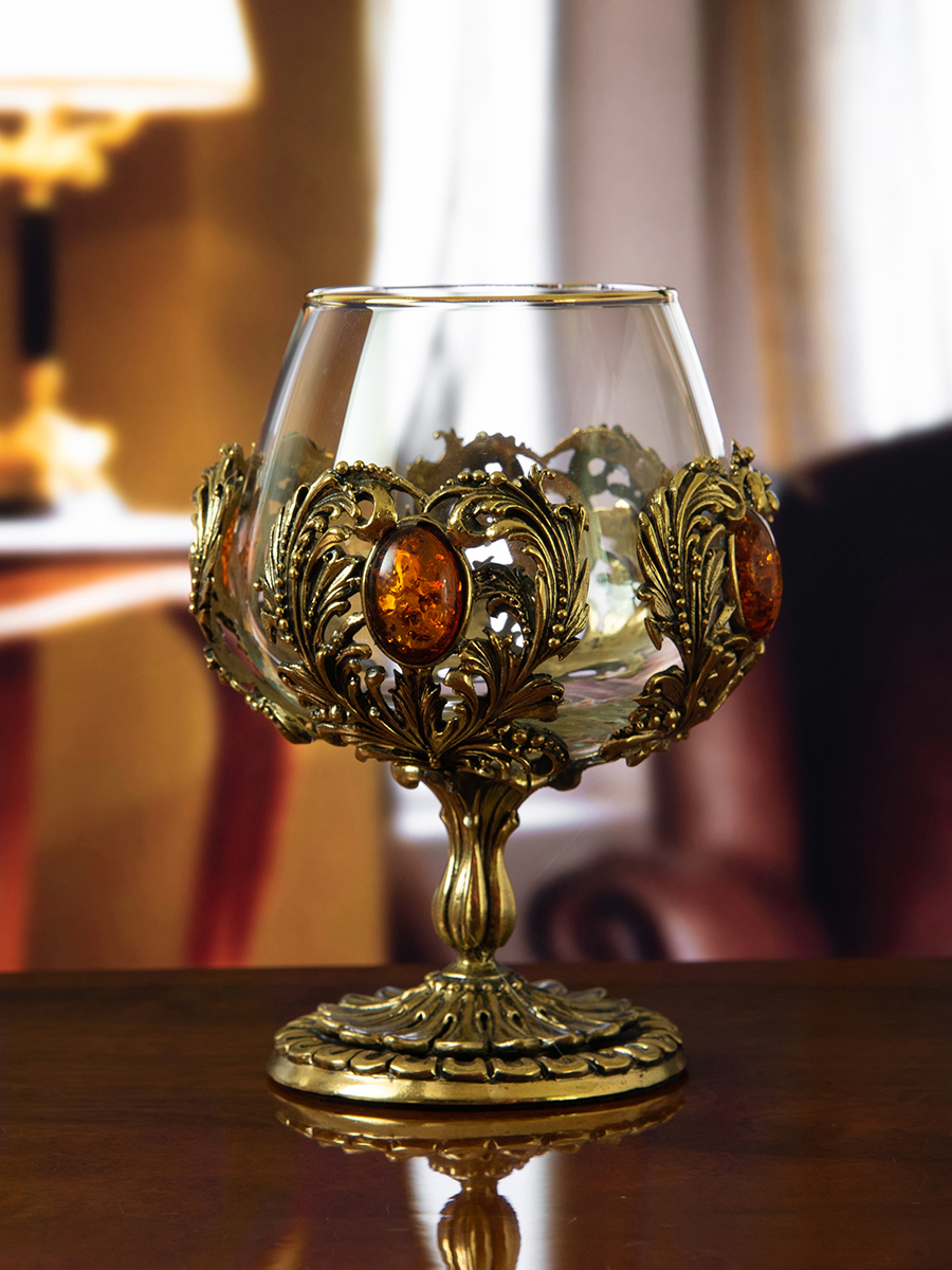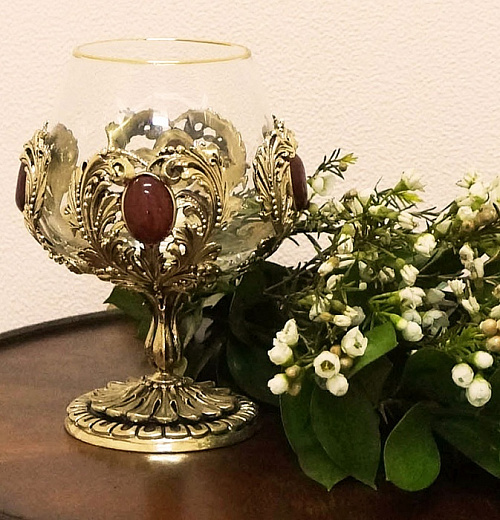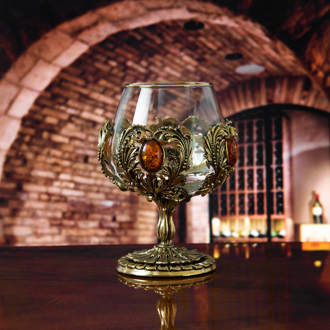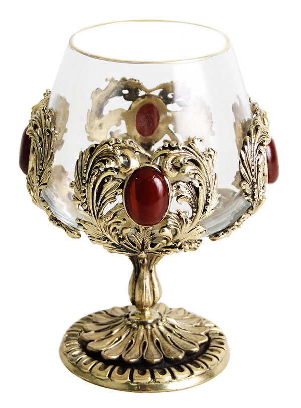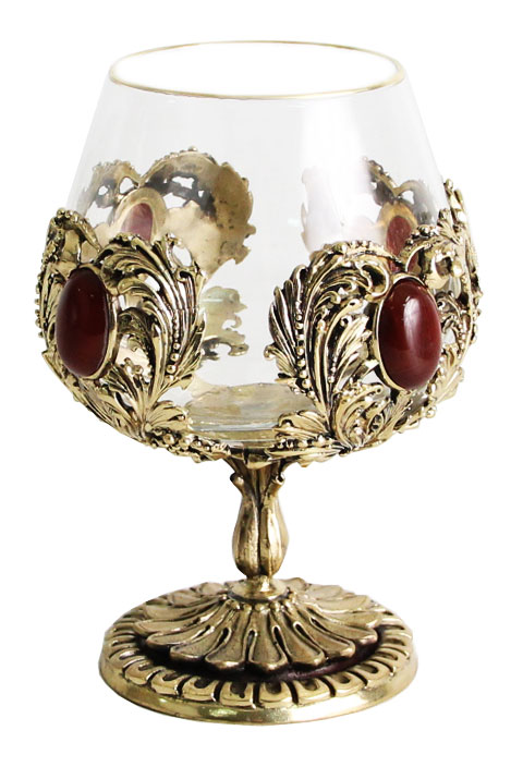 Бокал: стекло с декорированием, патинированная латунь, ручная работа. |