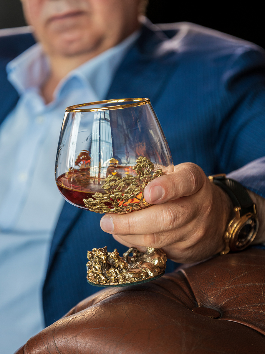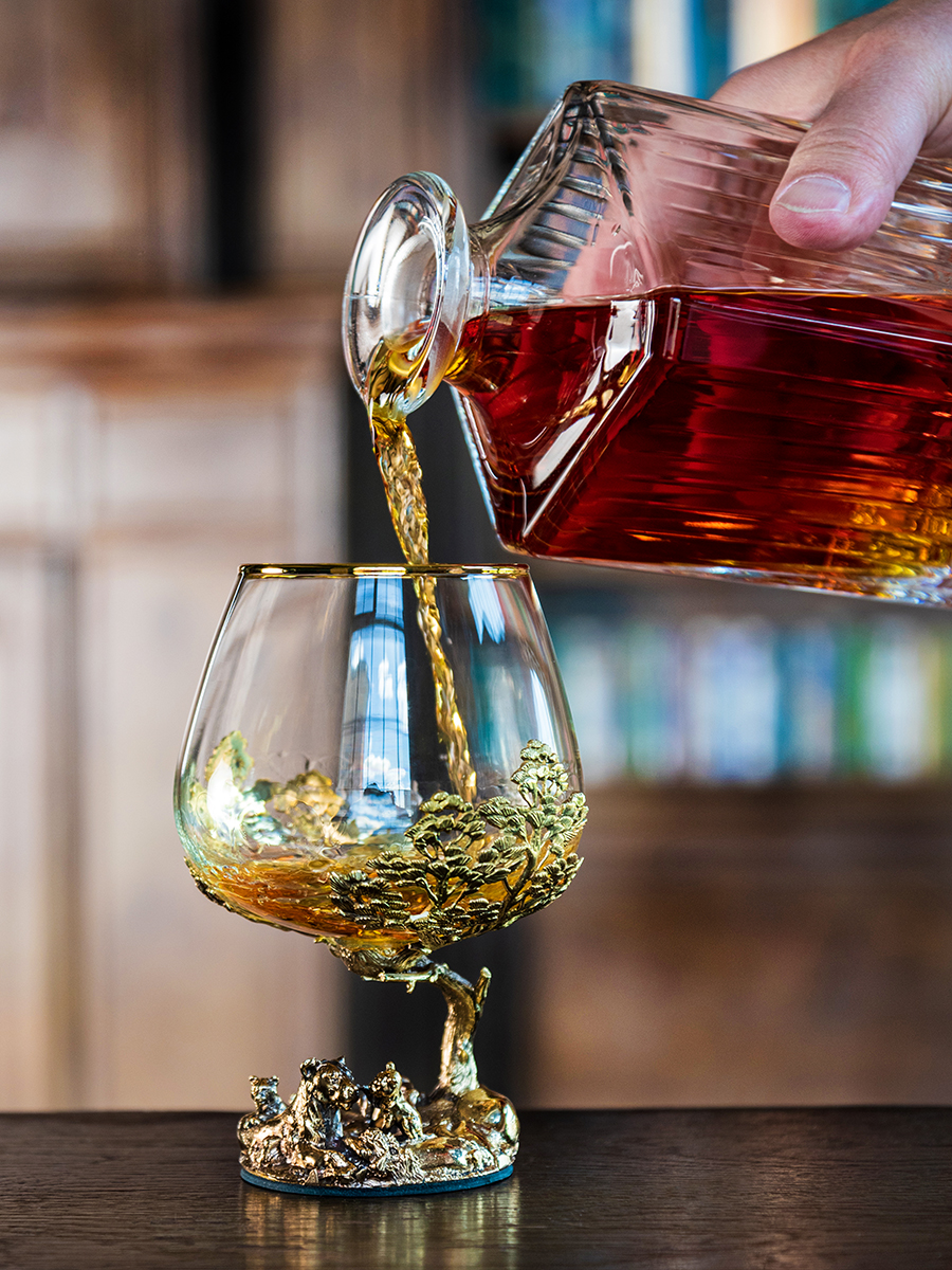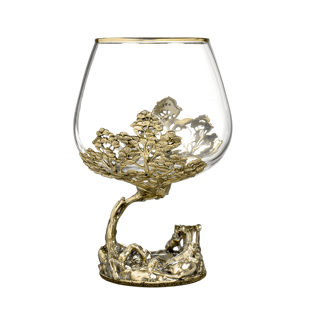 Бокал: стекло с декорированием, патинированная латунь, ручная работа. |