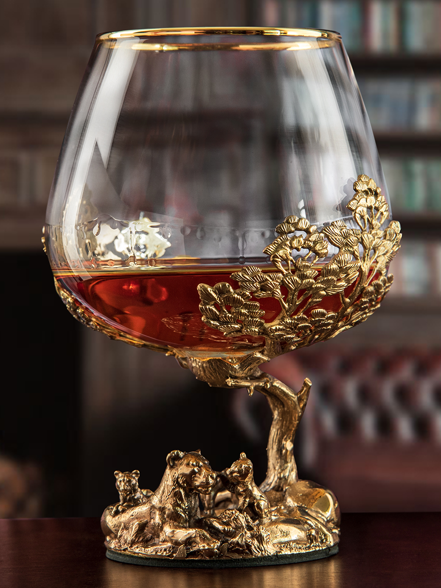 Бокал для коньяка Львица со львятами 420 мл в подарочной коробке