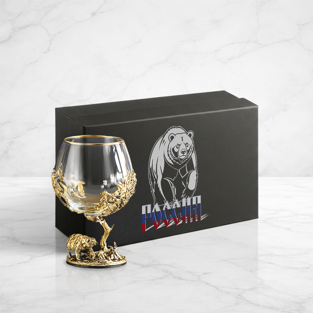 Бокал для коньяка Медведь в черной коробке с печатью Медведь Россия