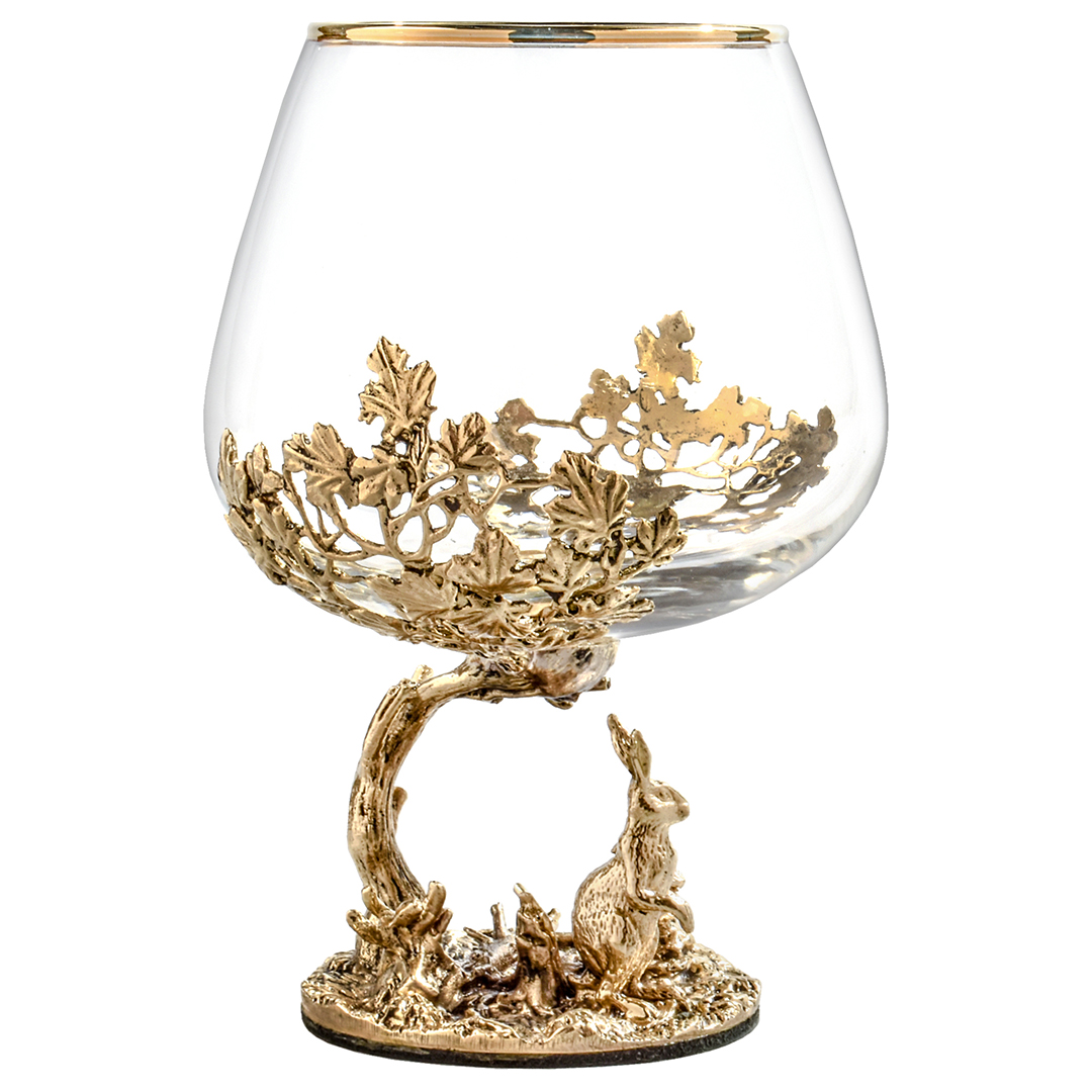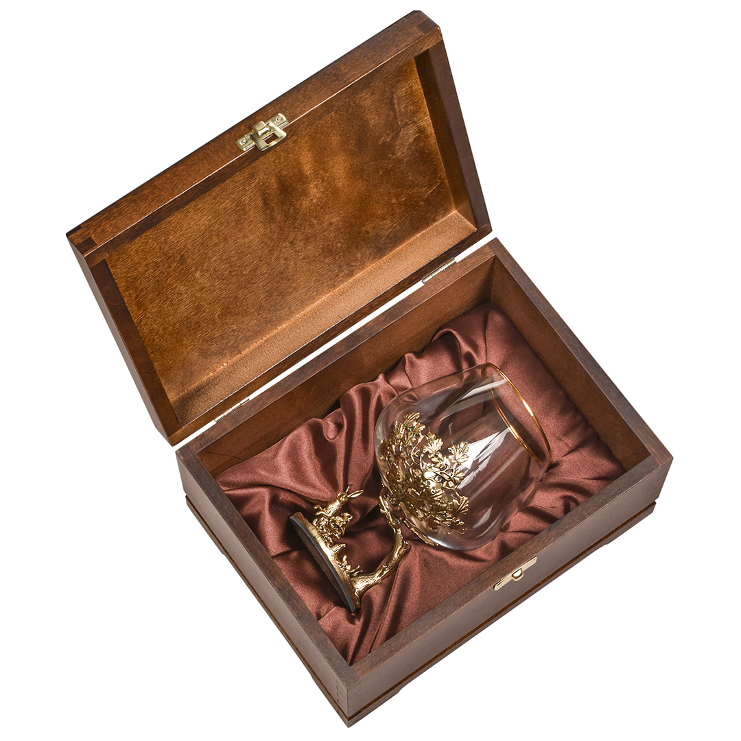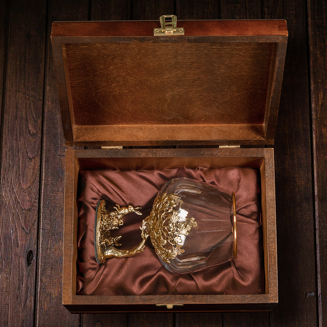 Бокал для коньяка "Заяц" 420 мл в деревянной шкатулке