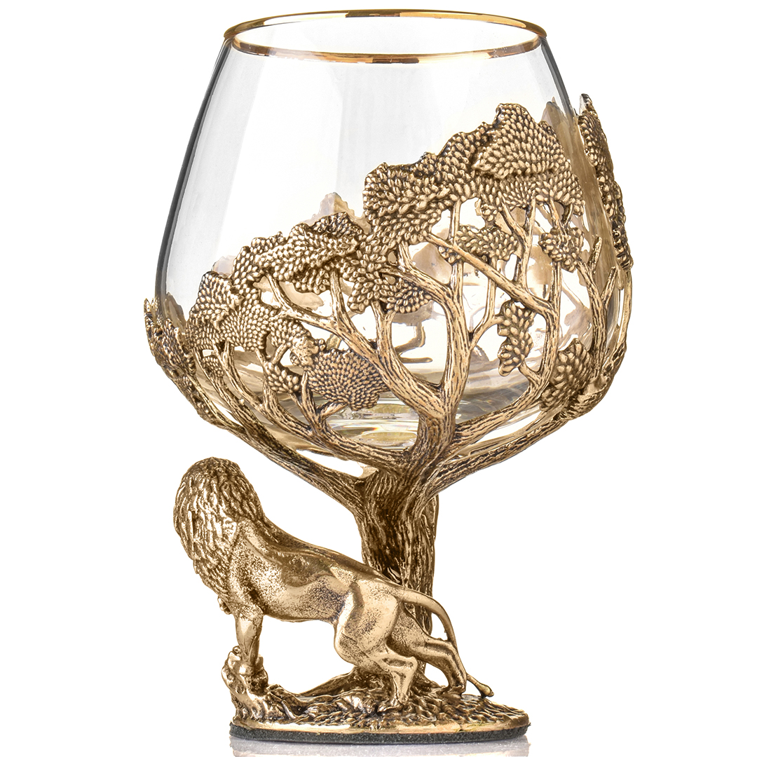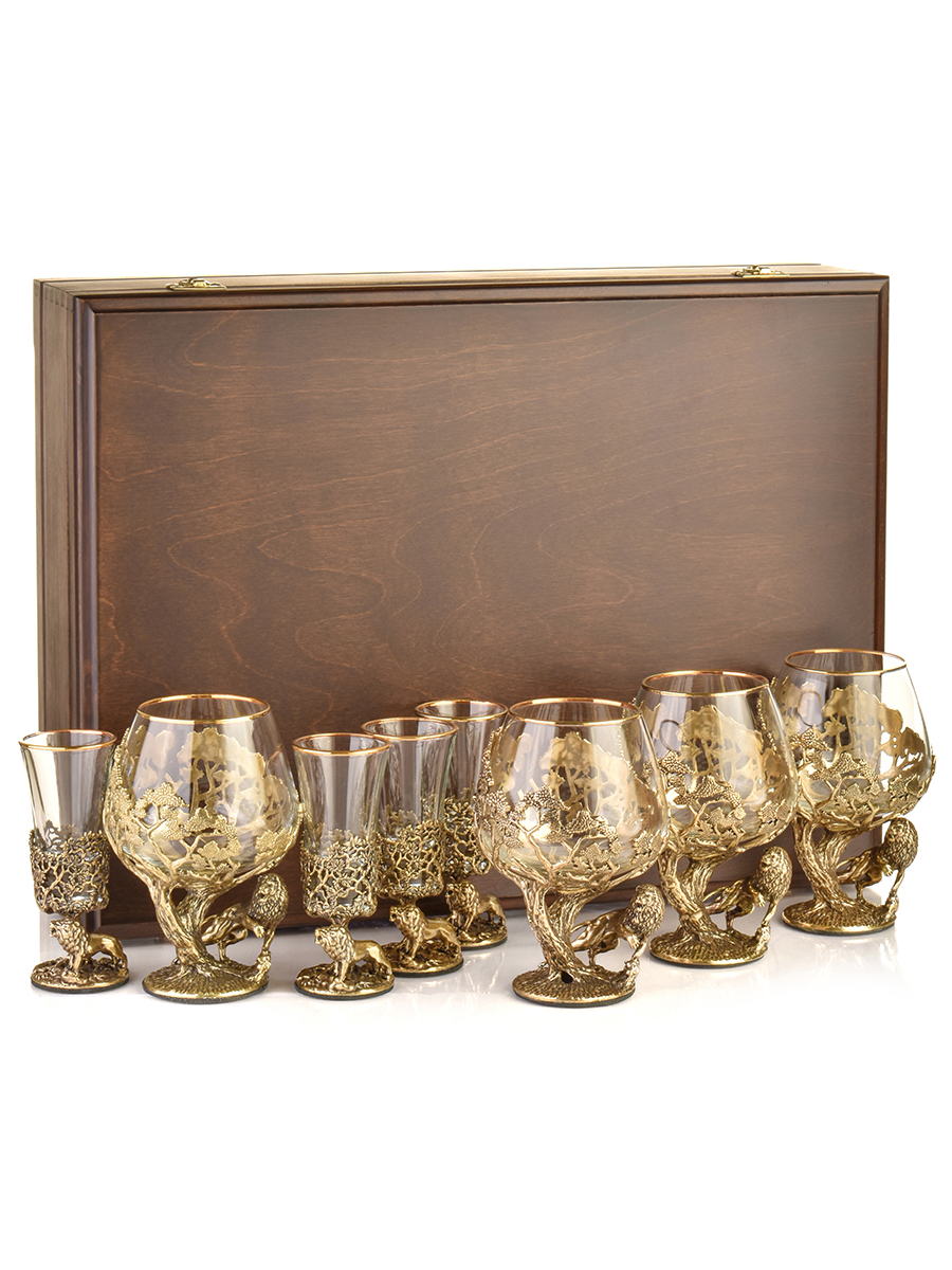 Набор 4 бокала для коньяка и 4 лафитника "Лев ROYAL", в шкатулке из массива