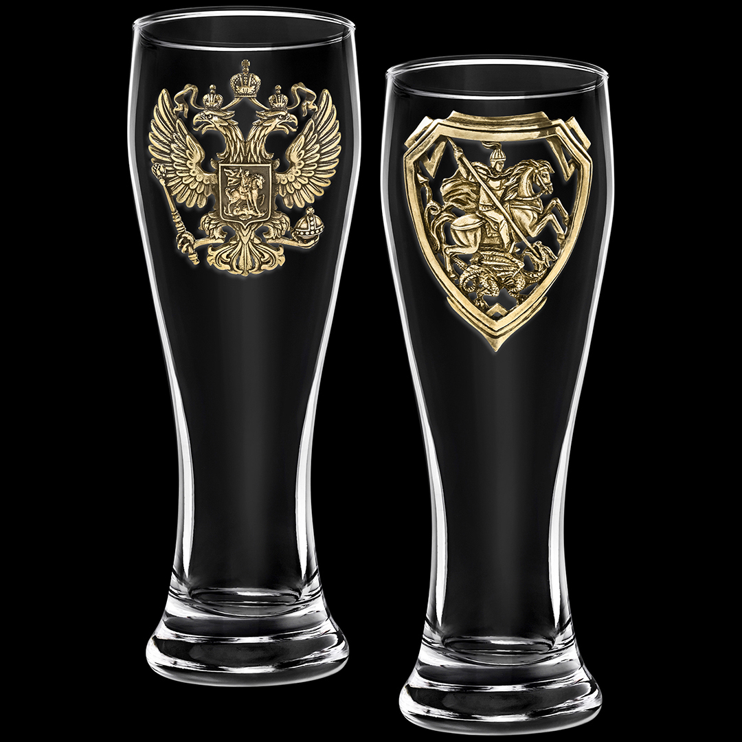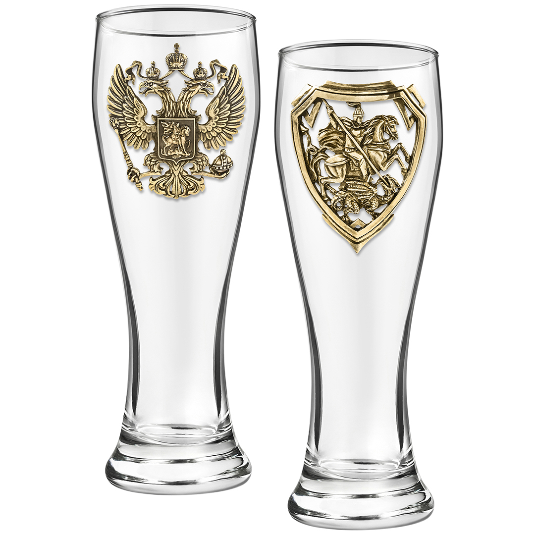 Набор 2 бокала для пива, накл. "Герб РФ/Георгий Победоносец" ВЕЛИКАЯ РОССИЯ ,в ч/б коробке