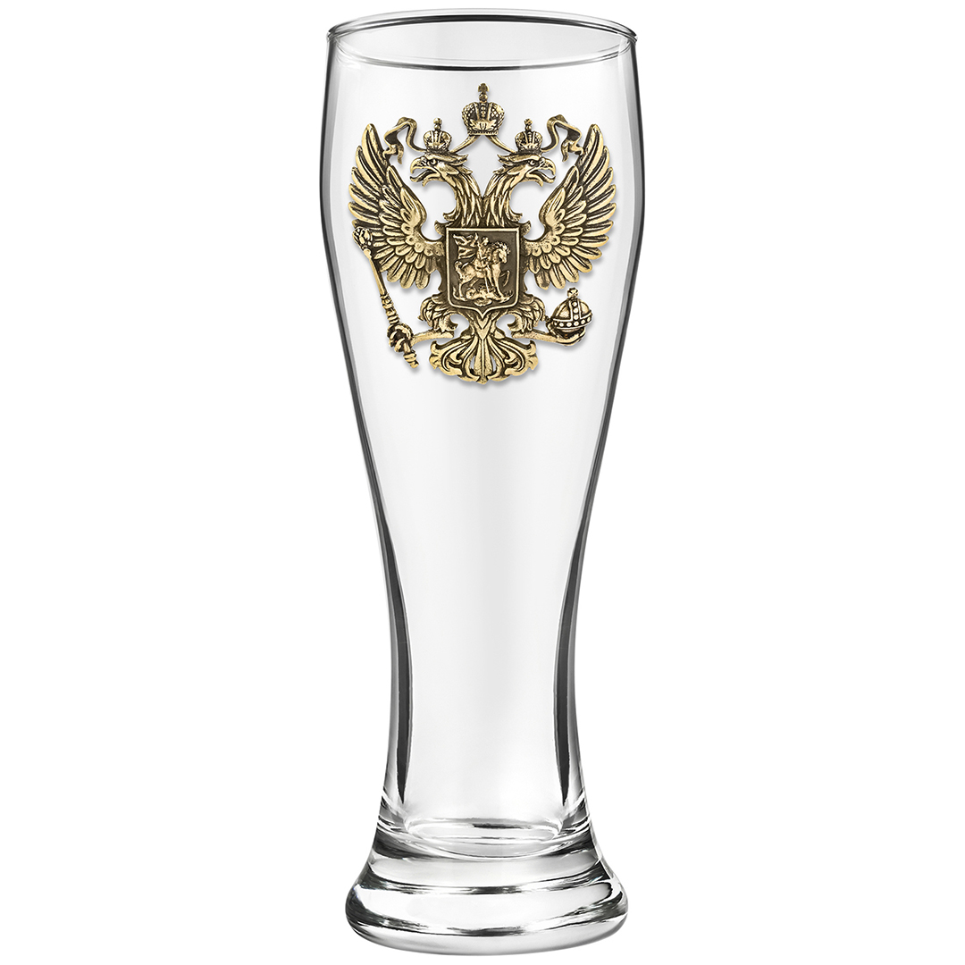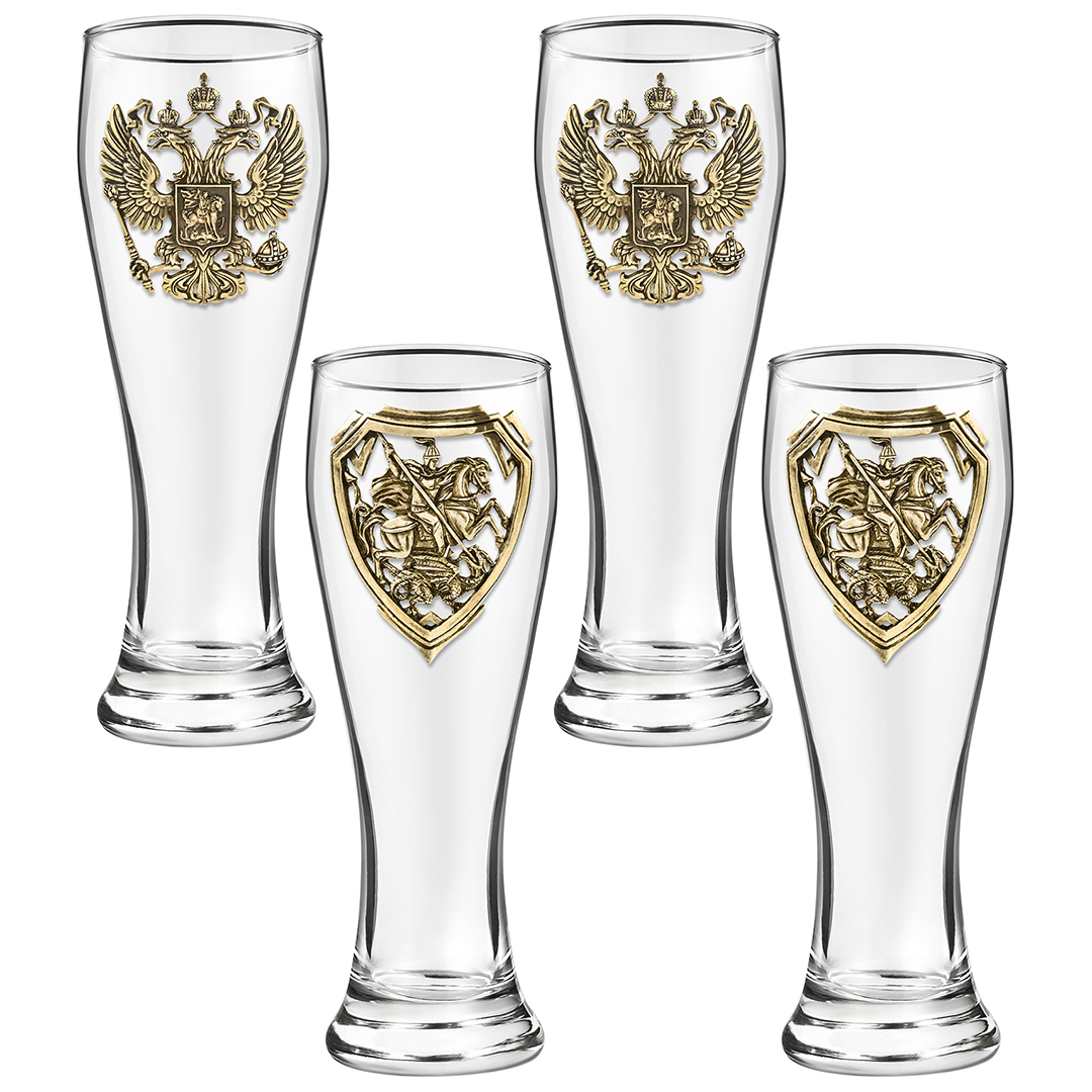 Набор 4 бокала для пива, накл. "Герб РФ и Георгий Победоносец" ВЕЛИКАЯ РОССИЯ ,в ч/б коробке