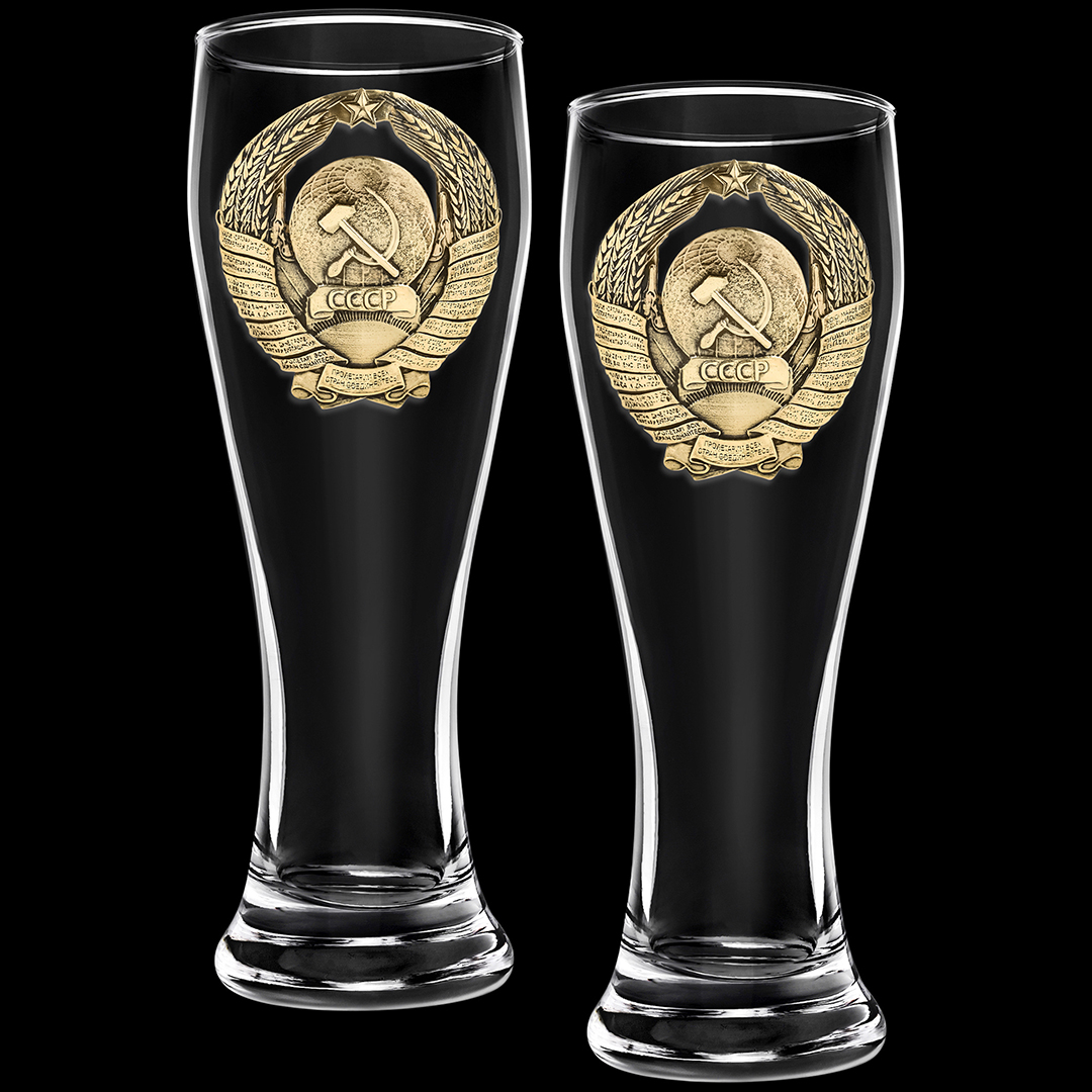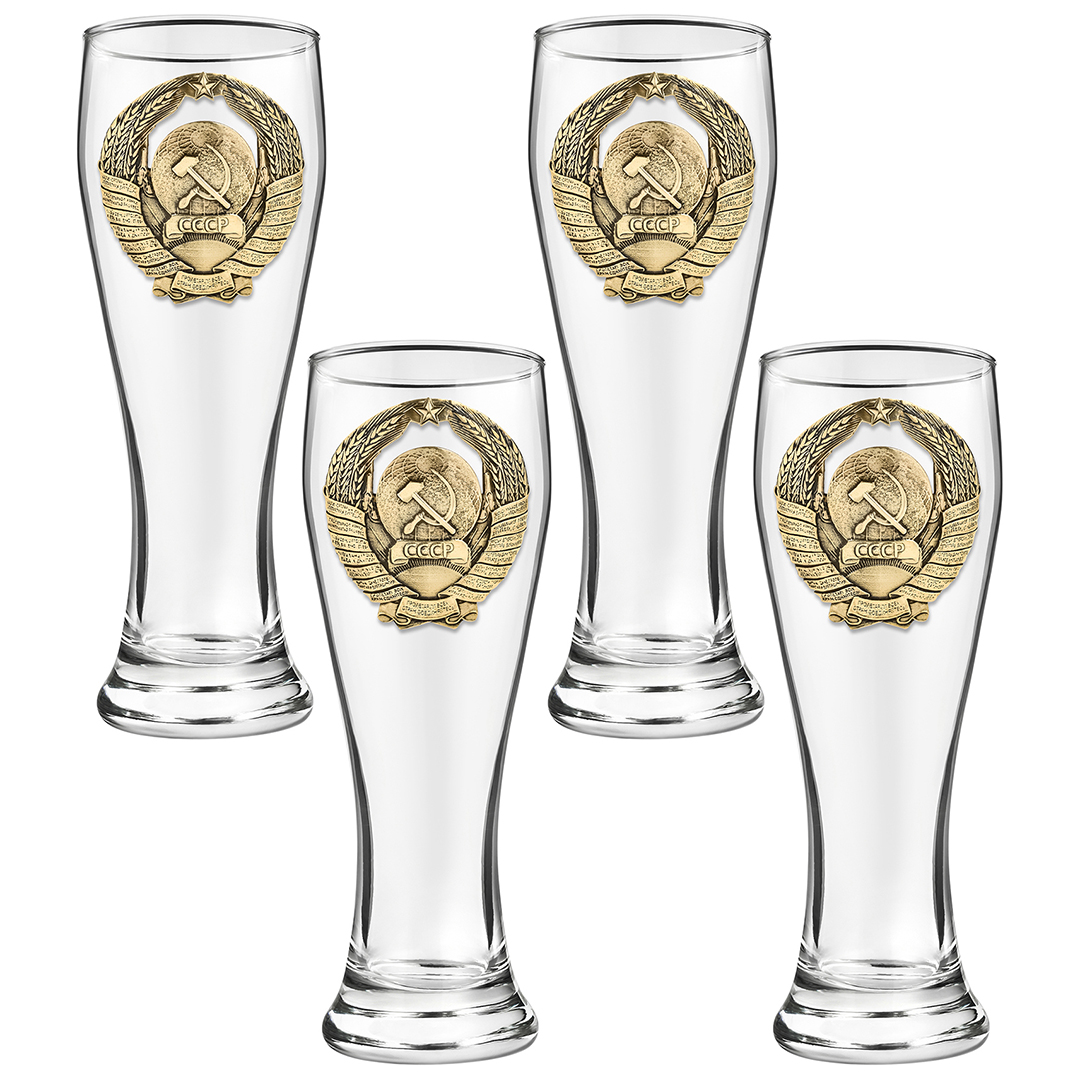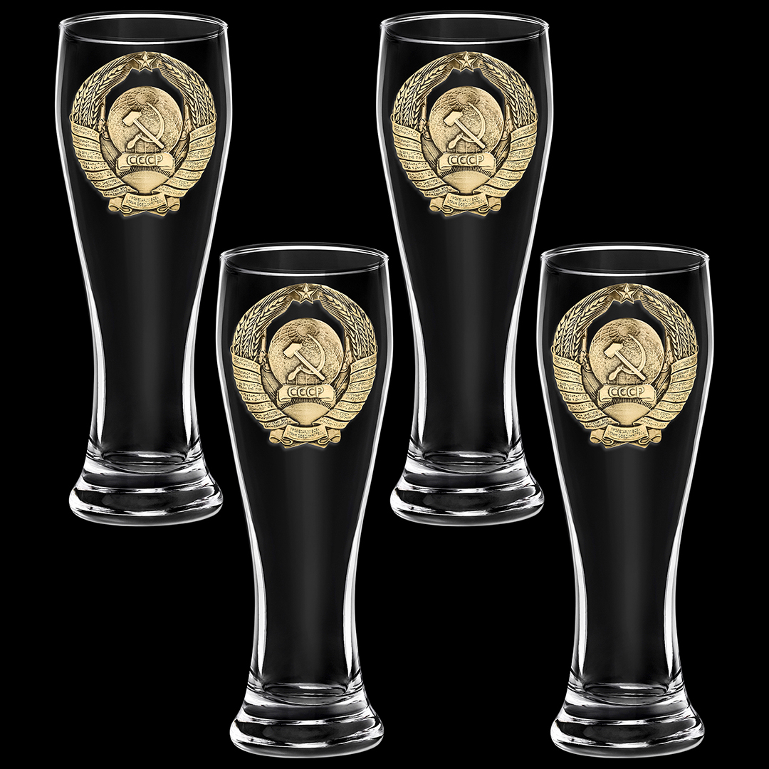 Набор 4 бокала для пива, накл. "Герб СССР" ВЕЛИКАЯ РОССИЯ ,в ч/б коробке