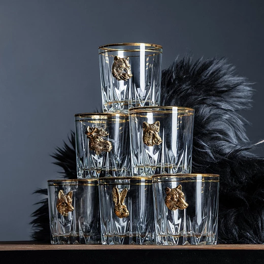 Набор из 6-ти бокалов для виски с Звери в подарочной коробке