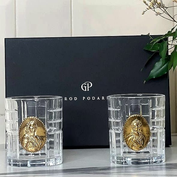Набор из 2-х плетеных бокалов для виски с накладками Петр и Екатерина в черной коробке