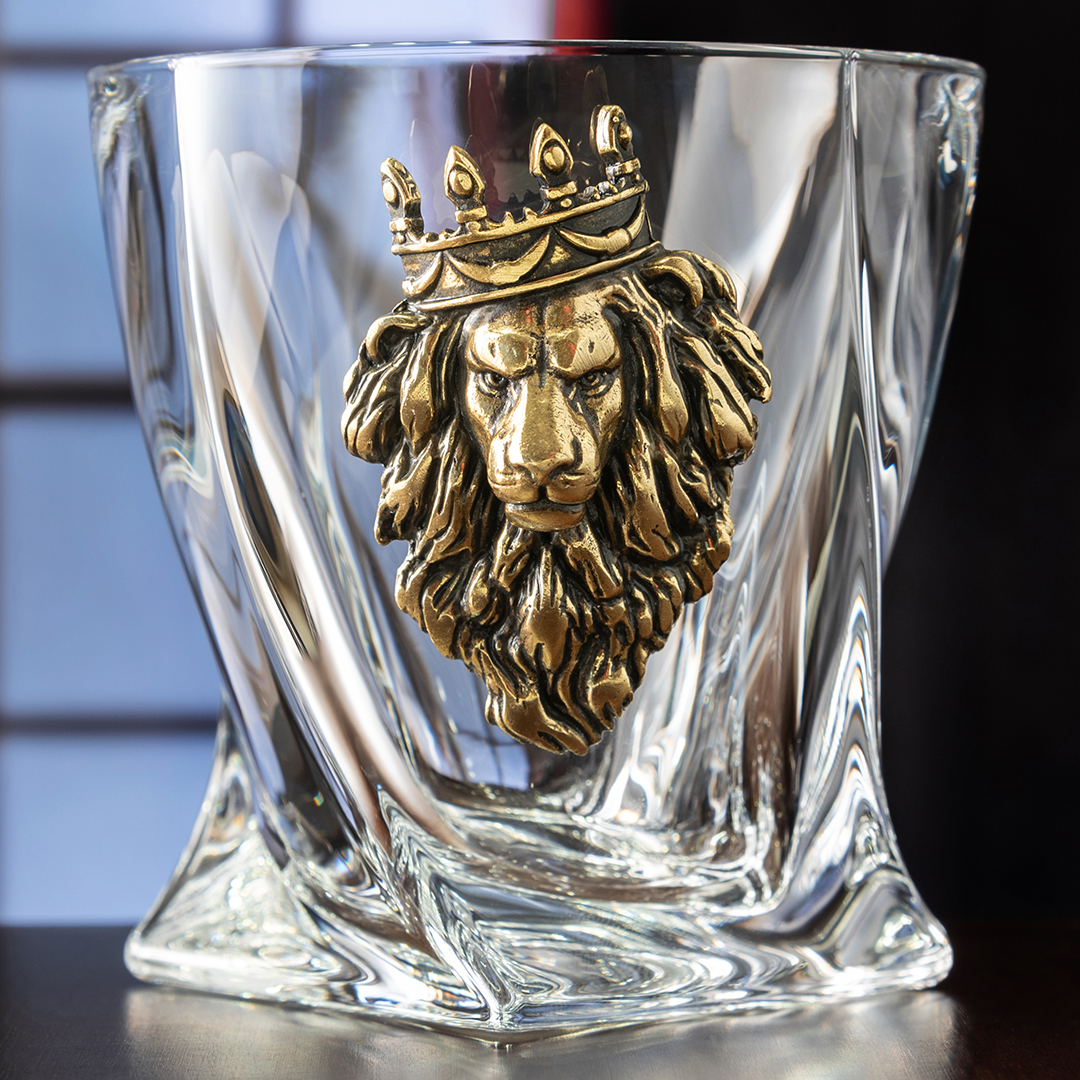 Бокал для виски с накладкой "Лев с короной", в коробке из дизайнерского картона