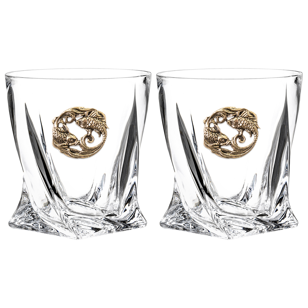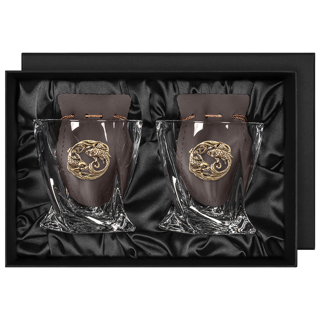 Набор 2 бокала для виски с накладкой "Рыбы", в коробке из дизайнерского картона