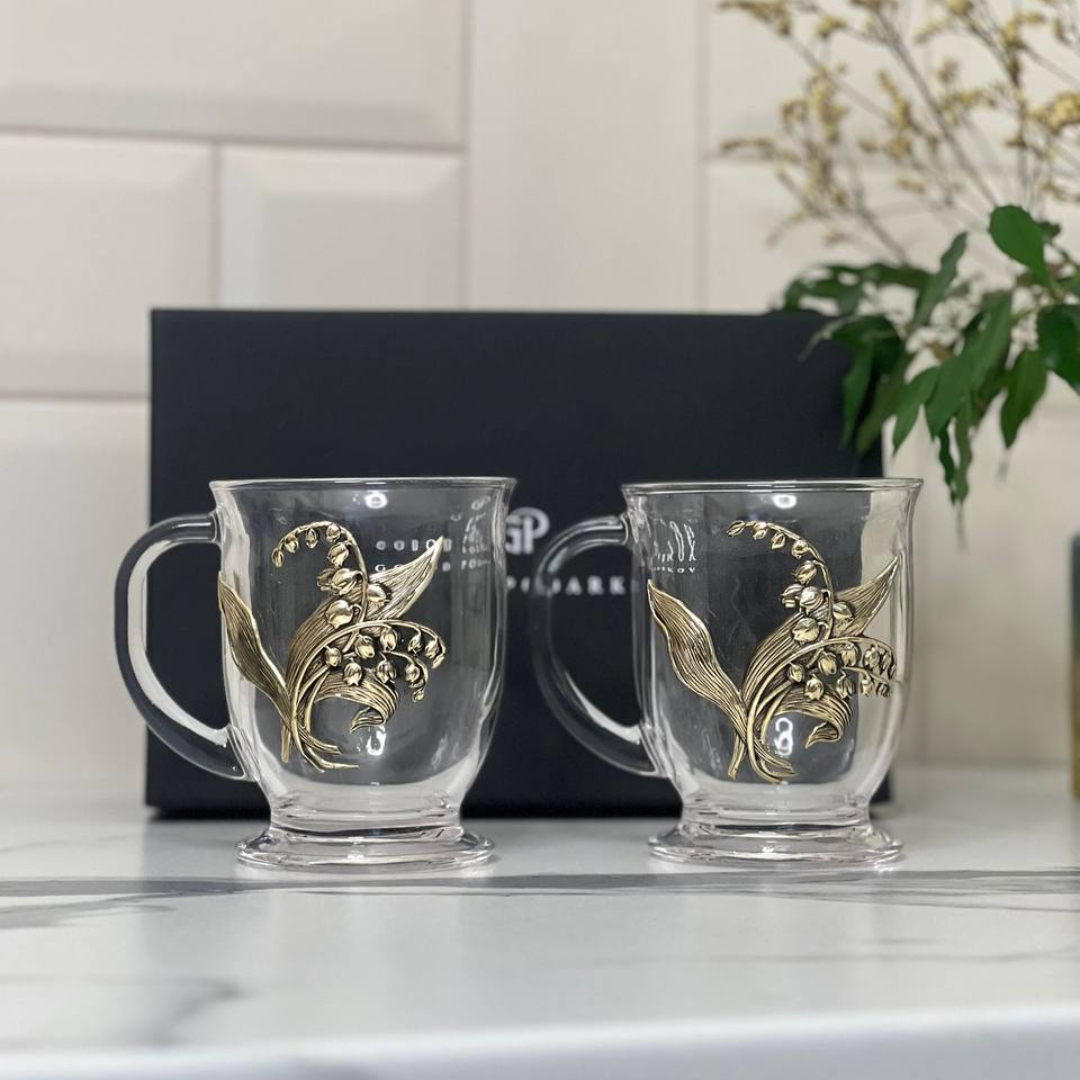 Набор для глинтвейна: 2 чашки с накладками Ландыш в черной коробке