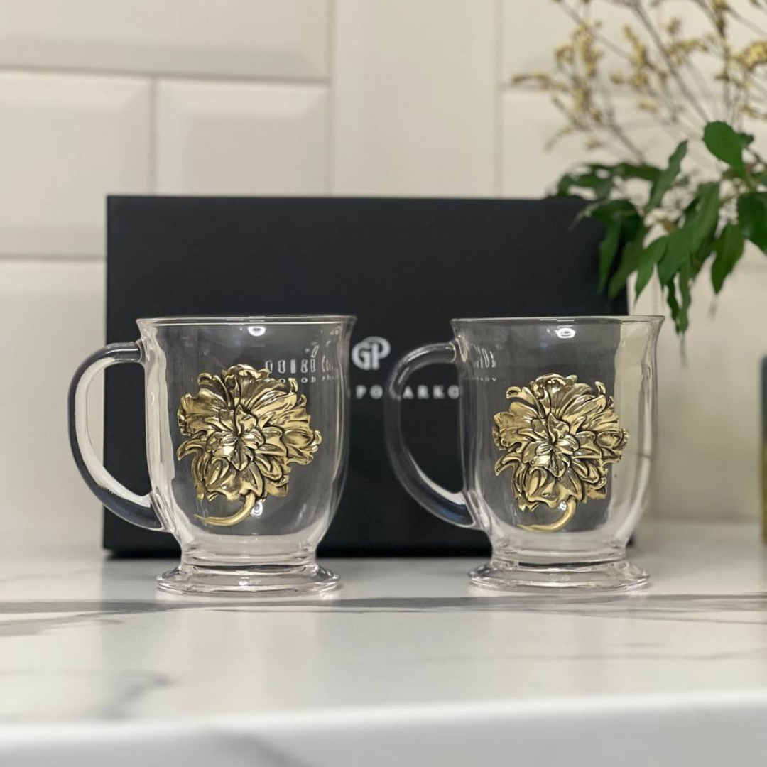 Набор для глинтвейна: 2 чашки с накладками Пион в черной коробке