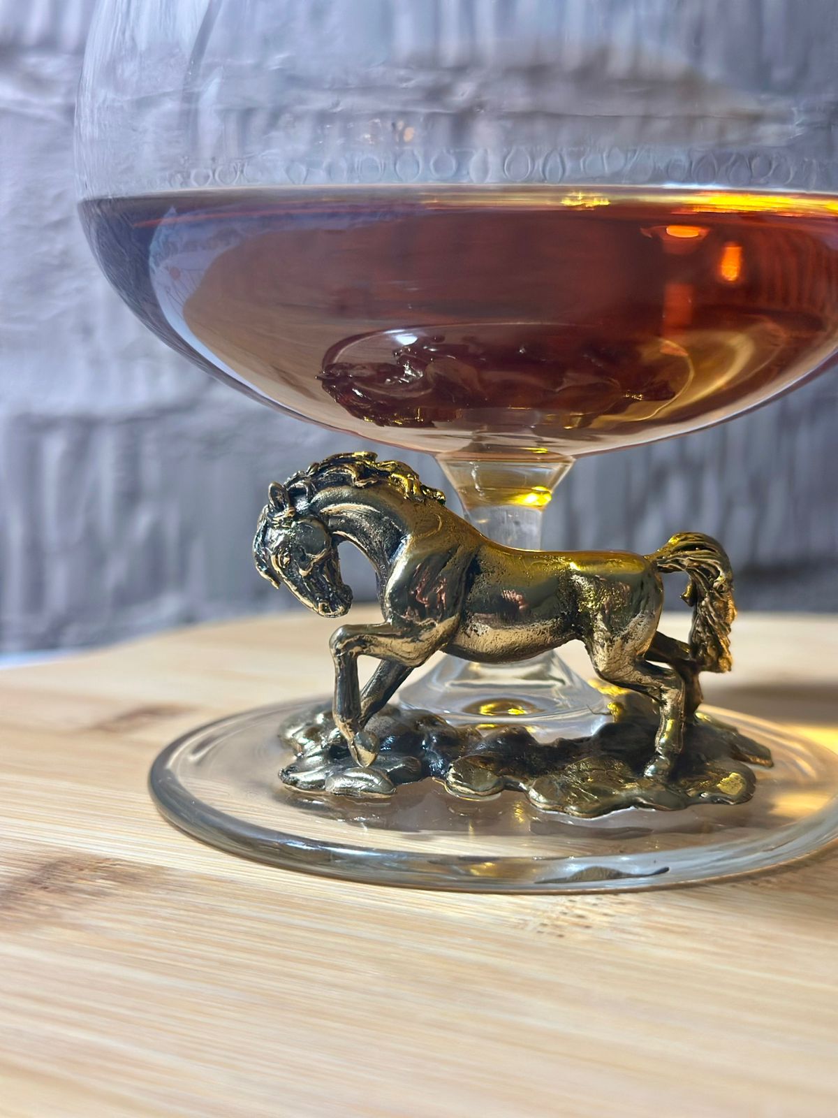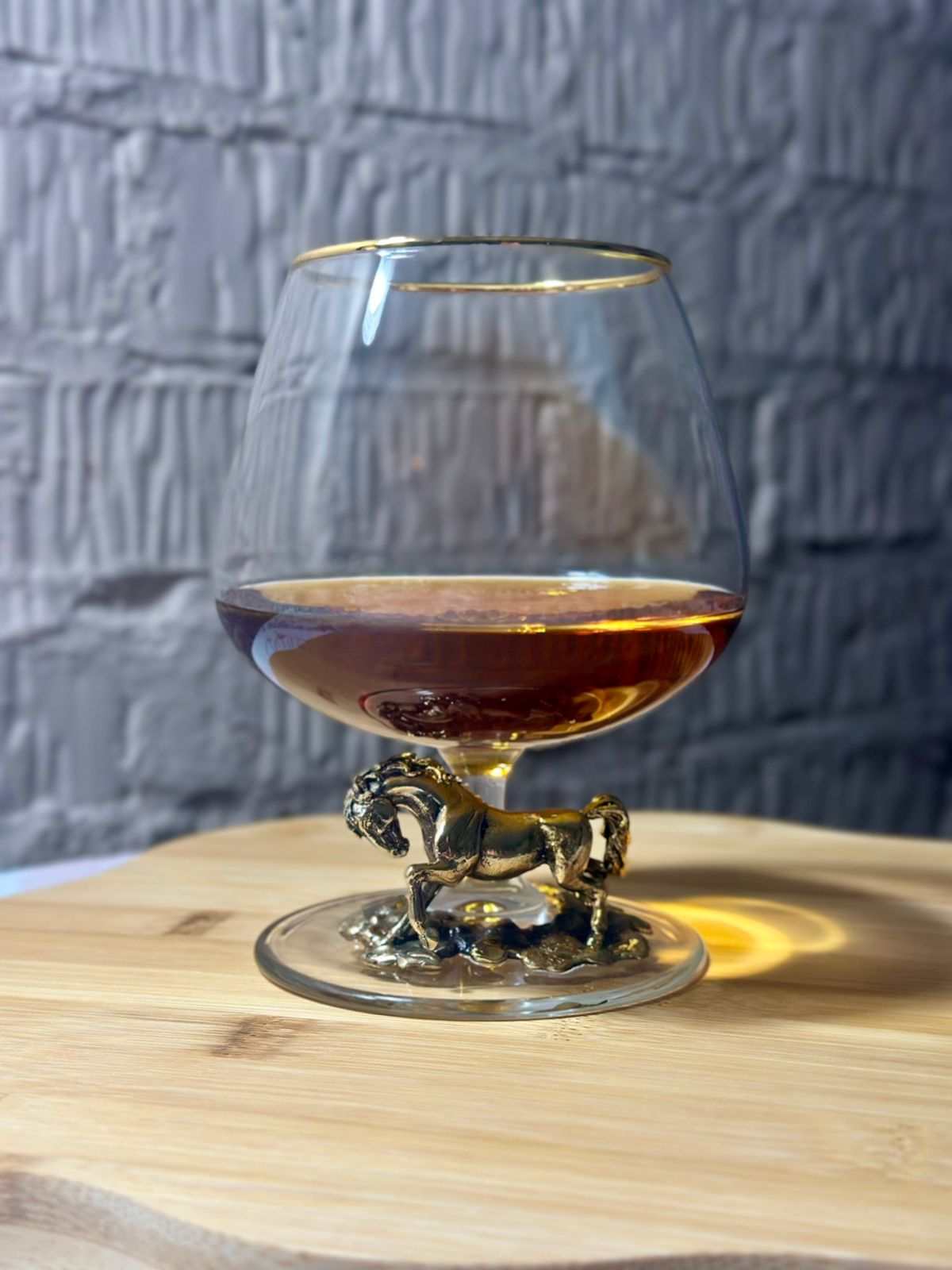 ✨Бокал для коньяка со статуэткой «Лошадь» — изысканный подарок из новогодней коллекции.Коньяк — напиток особых моментов. Его вкус раскрывается в бокале медленно, требуя уважения и настроения. А когда бокал украшен латунной статуэткой лошади на ножке, он превращается в символ силы, движения и благородства.