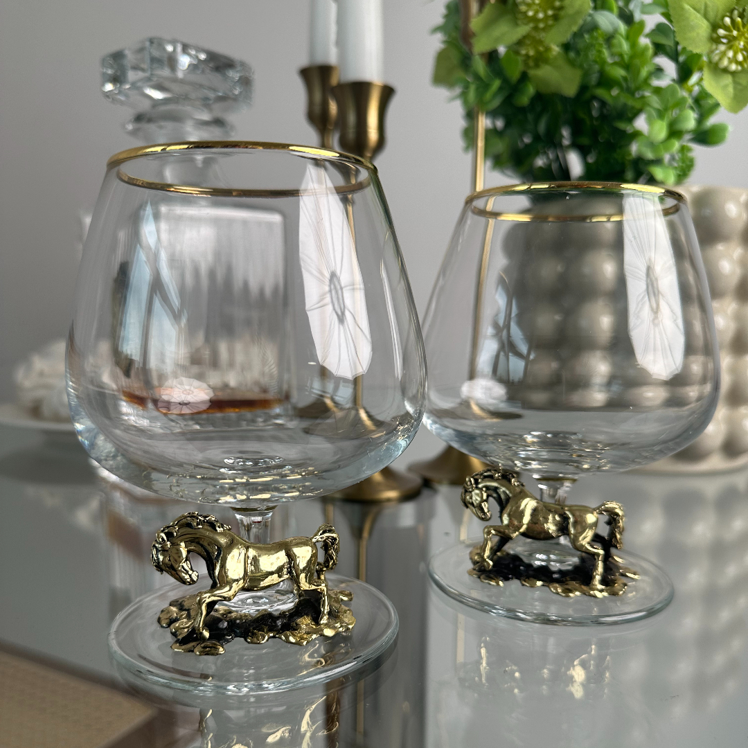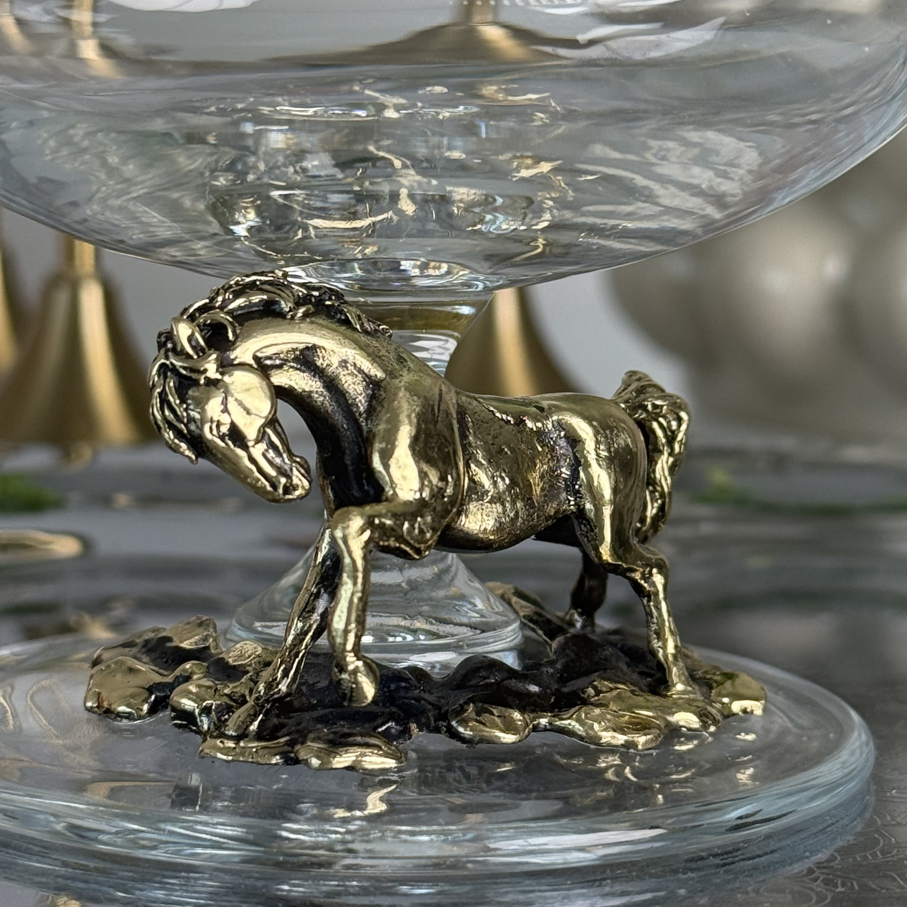 ✨ Набор бокалов для коньяка со статуэткой «Лошадь» — изысканный подарок из новогодней коллекции.Коньяк — напиток особых моментов. Его вкус раскрывается в бокале медленно, требуя уважения и настроения. А когда бокал украшен латунной статуэткой лошади на ножке, он превращается в символ силы, движения и благородства.