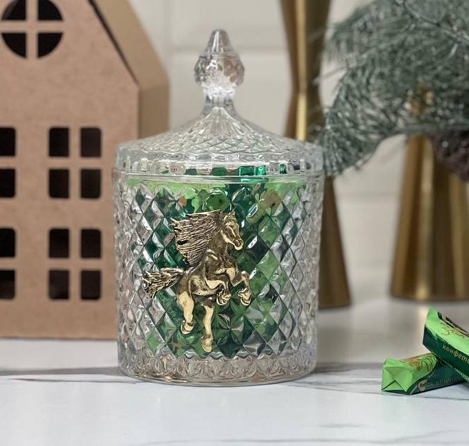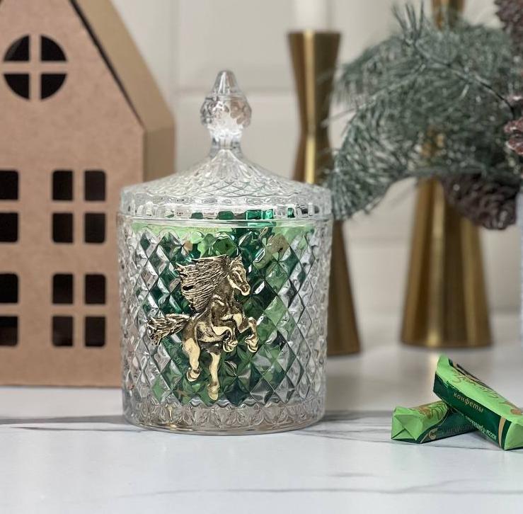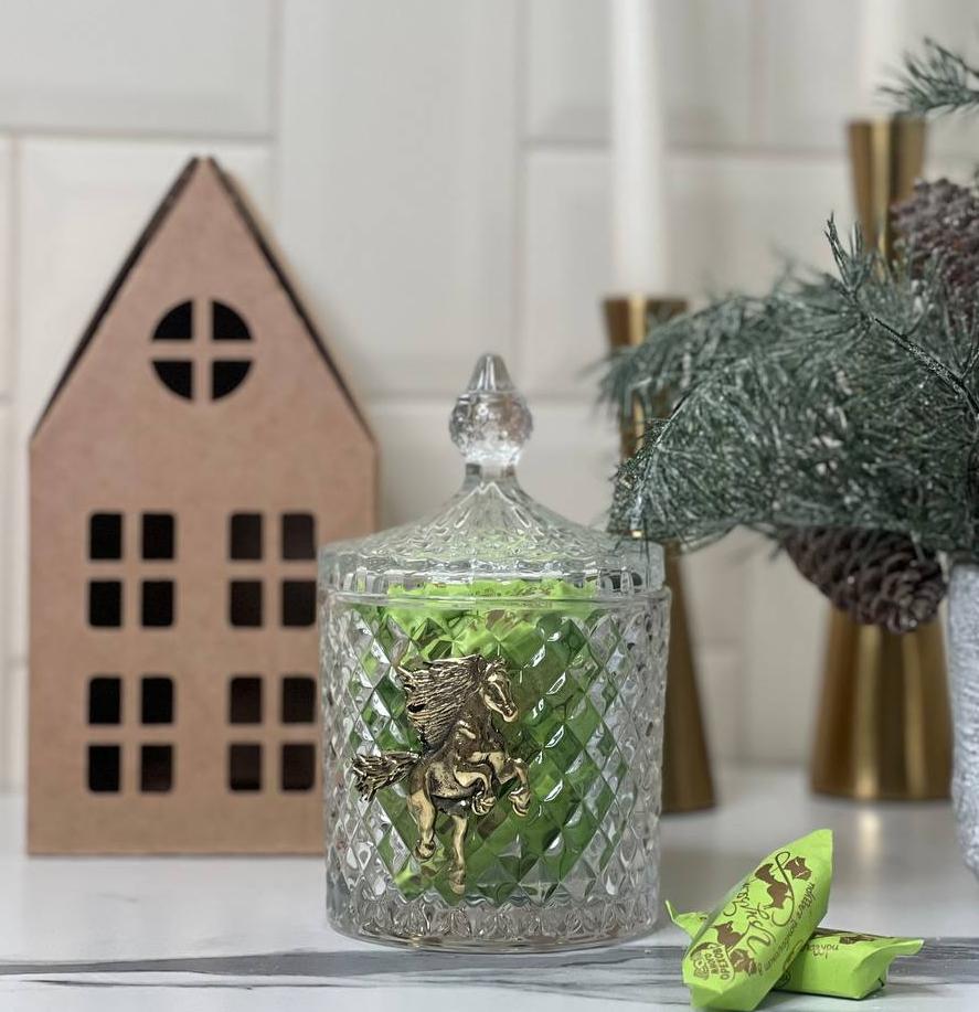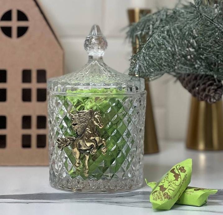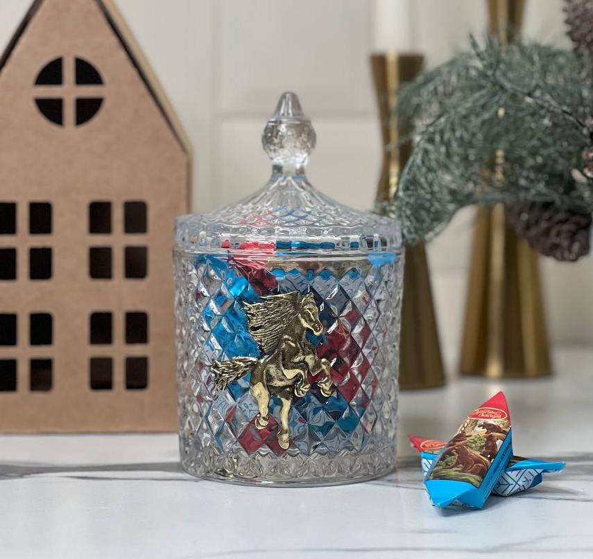 Набор Новогодний: шкатулка большая Лошадь в упаковке домик с конфетами