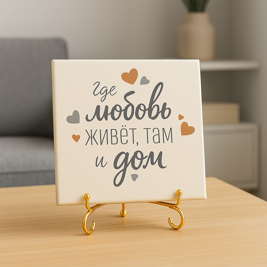 Подарите своим близким тепло и уют через этот уникальный символ домашней любви! Закажите плитку «Где любовь живёт...» прямо сейчас — сделайте ваш дом местом, куда хочется возвращаться каждый день. Этот элегантный и душевный подарок станет отличным напоминанием о важном и наполнит интерьер смыслом.