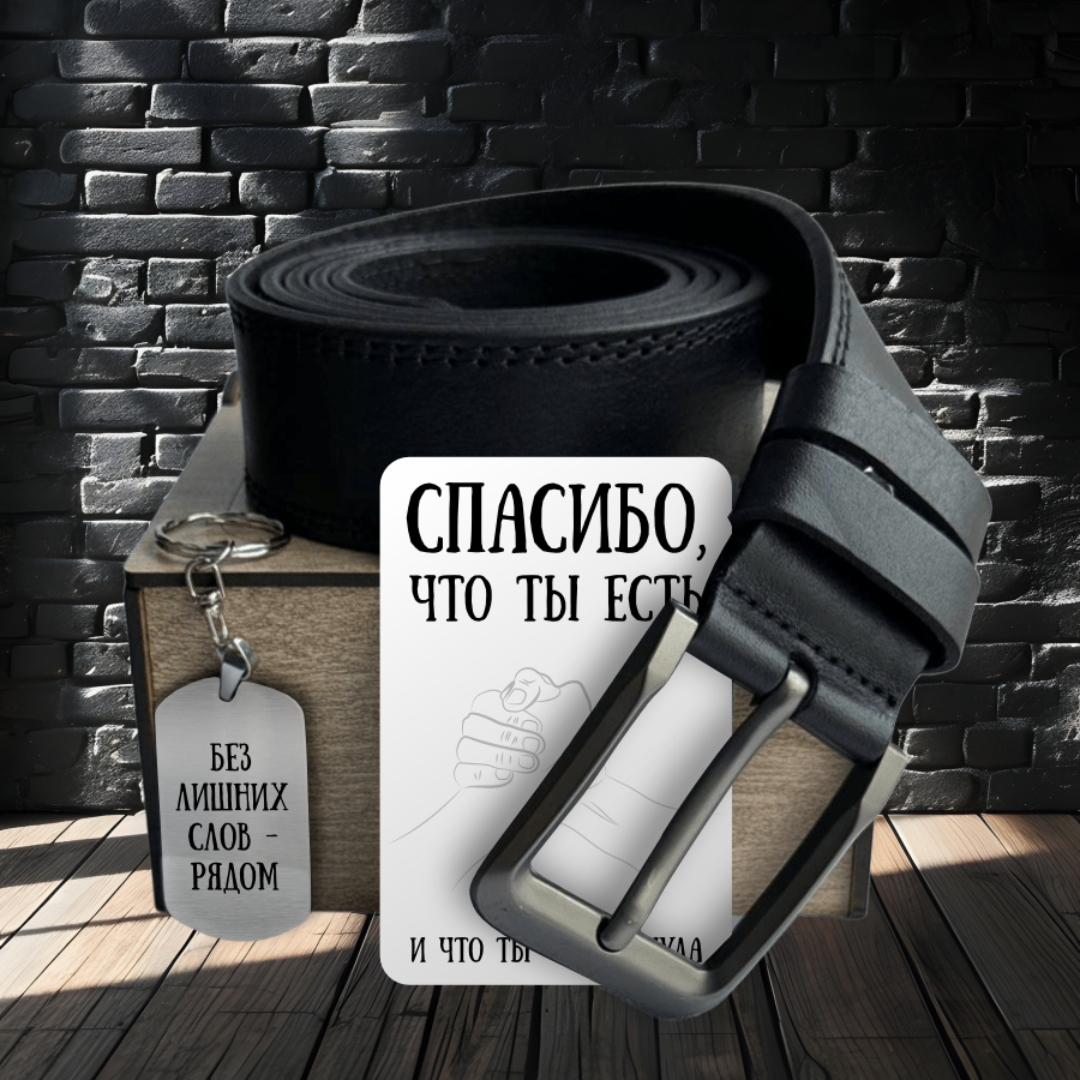 Ремень кожаный,Жетон "Настоящий мужчина",Открытка,Деревянная коробка |