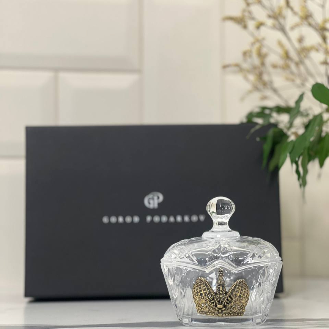 Шкатулка Корона с накладкой Корона в черной подарочной коробке