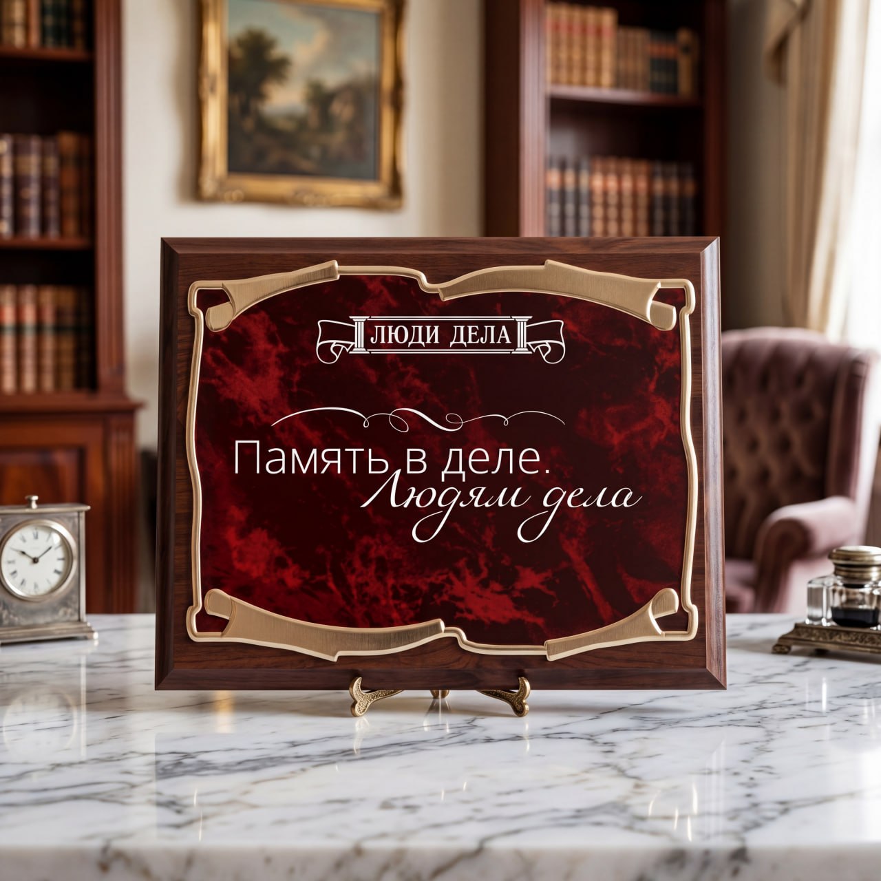 Плакетка Люди дела Память в деле в черной подарочной коробке с печатью