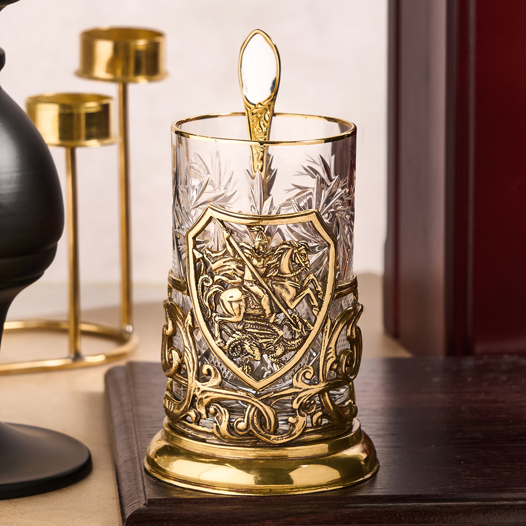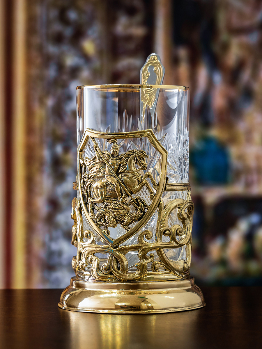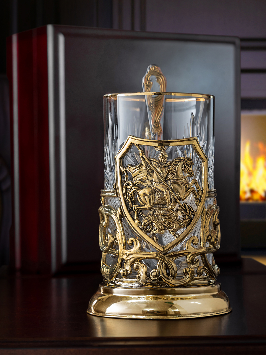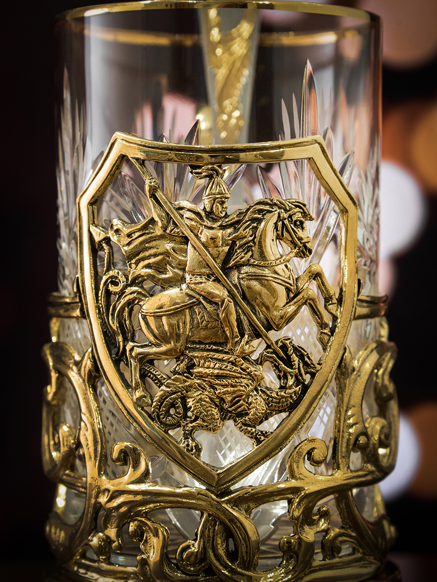 Подстаканник ручной работы "Георгий Победоносец",в деревянной шкатулке