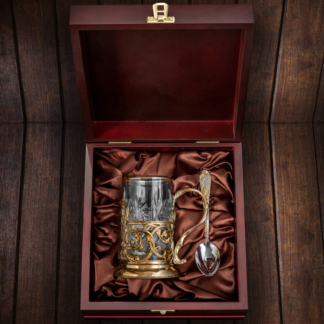 В наборе 1 подстаканник, чайная ложка, деревянная шкатулка |